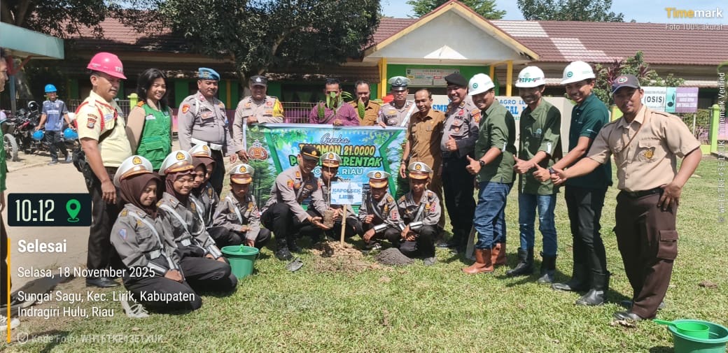Kegiatan yang digelar dalam rangka mendukung program Green Policing Kapolda Riau ini, sekaligus menyambut Hari Pohon Nasional yang diperingati setiap 21 November. Dipimpin oleh Kapolsek Lirik, AKP Novris H. Simanjuntak, S.H., M.H., kegiatan penanaman pohon berlangsung hangat dan melibatkan berbagai unsur.