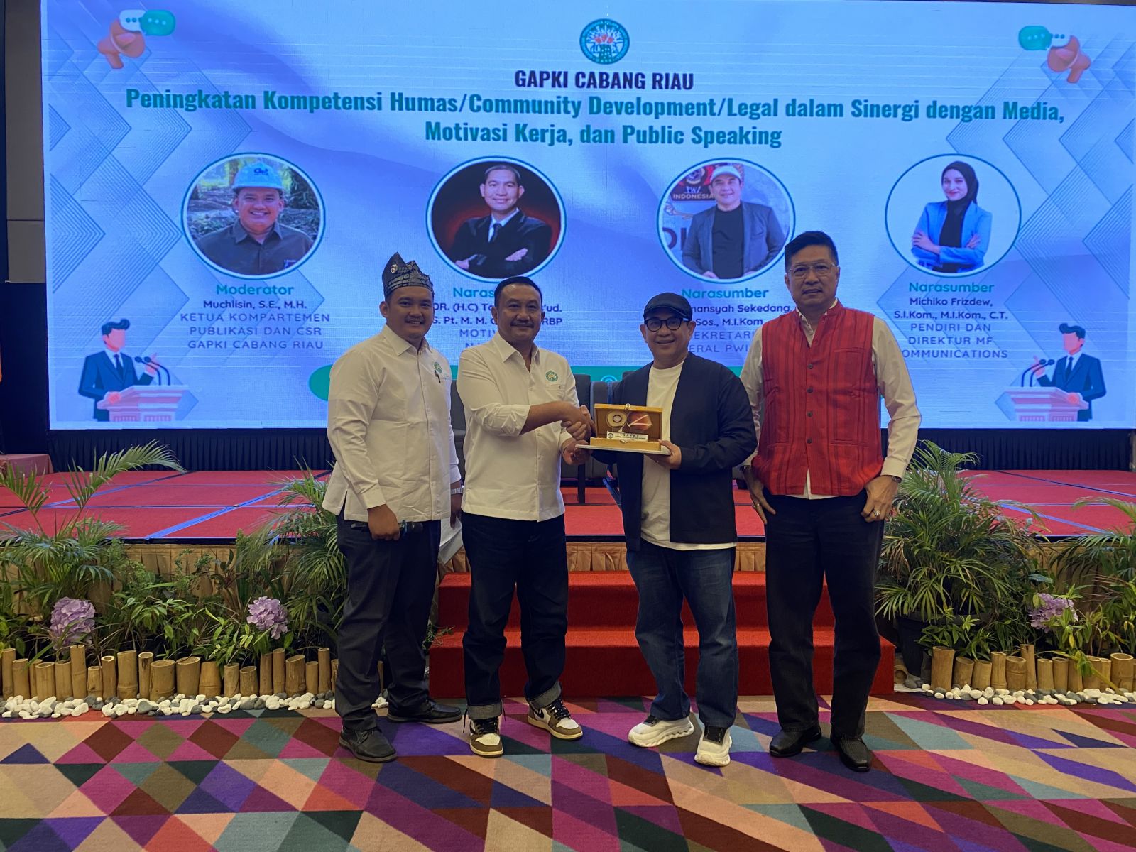 Kegiatan ini menghadirkan sejumlah narasumber nasional dan praktisi komunikasi. Di antaranya DR. (H.C.) Tahidin Mas’ud, S.Pt., M.M., CPHRM., HRBP sebagai Motivator Nasional; H. Zulmansyah Sekedang, S.Sos., M.I.Kom selaku Sekretaris Jenderal PWI Pusat; serta Michiko Frizdew, S.I.Kom., M.I.Kom., C.T., Pendiri dan Direktur MF Communications. Acara dipandu oleh Muchlisin, S.E., M.H., Ketua Kompartemen Publikasi dan CSR GAPKI Cabang Riau.