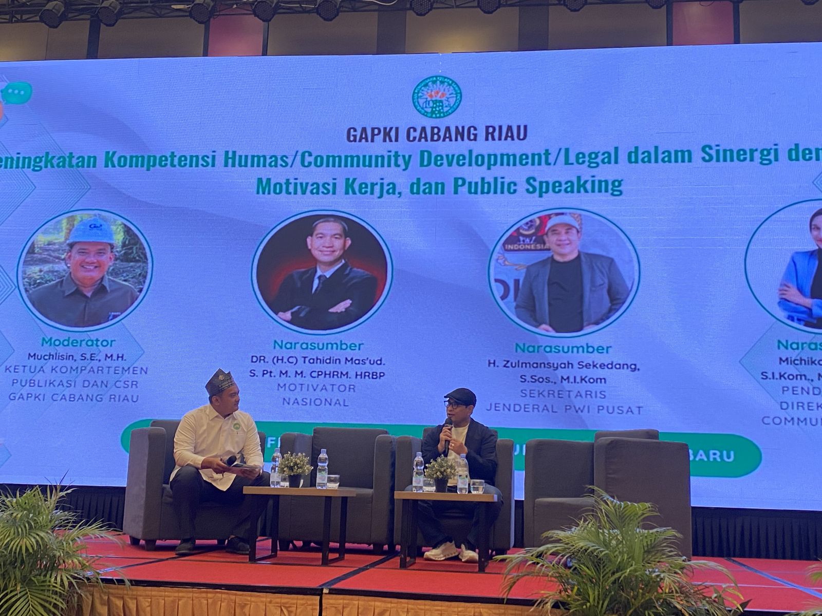Kegiatan ini menghadirkan sejumlah narasumber nasional dan praktisi komunikasi. Di antaranya DR. (H.C.) Tahidin Mas’ud, S.Pt., M.M., CPHRM., HRBP sebagai Motivator Nasional; H. Zulmansyah Sekedang, S.Sos., M.I.Kom selaku Sekretaris Jenderal PWI Pusat; serta Michiko Frizdew, S.I.Kom., M.I.Kom., C.T., Pendiri dan Direktur MF Communications. Acara dipandu oleh Muchlisin, S.E., M.H., Ketua Kompartemen Publikasi dan CSR GAPKI Cabang Riau.